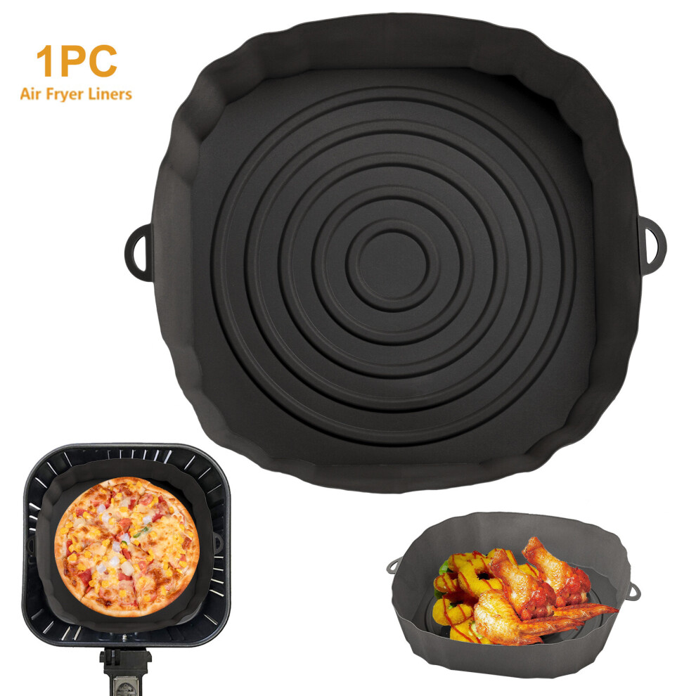 (1pc black) 3/2/1Pcs Air Fryer Silicone Basket Pot Oven Baking Tray Fried Pizza Chicken Mat Round Replacemen AirFryer Grill Pan Pad Liner