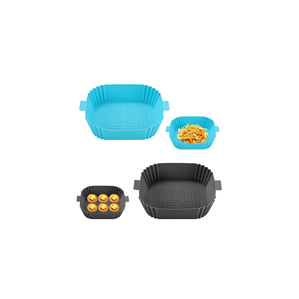 2 Piece Square Air Fryer Liners, 7.8" Air Fryer Silicone Basket, Reusable, Baking Mold, Replacement Baking Pan, for Air Fryer, Oven, Microwave (Blue,