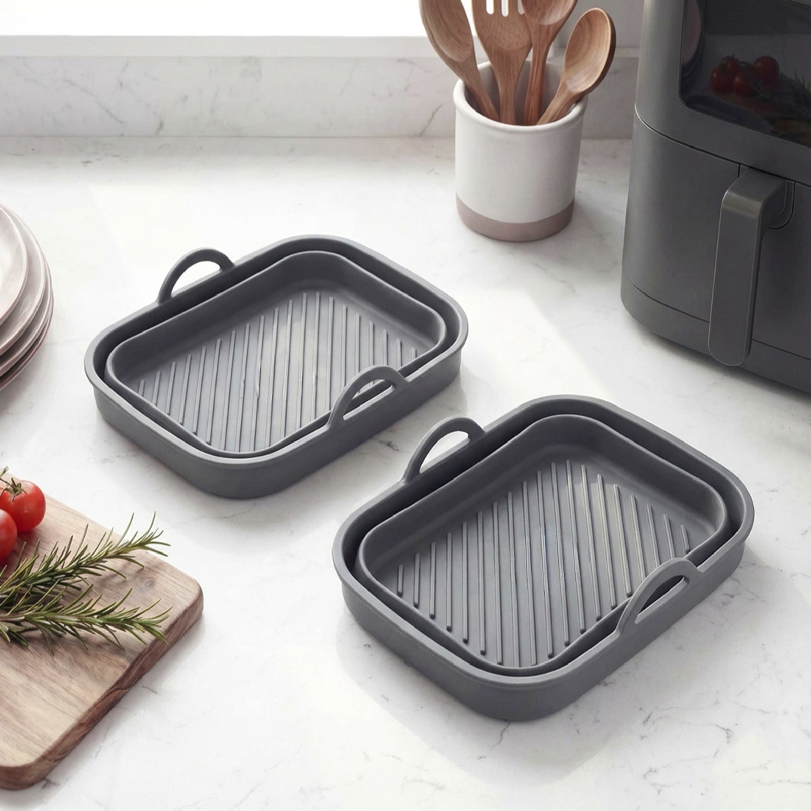 Salter Square Air Fryer Basket Liner - Collapsible, Set of 2, Ribbed Base