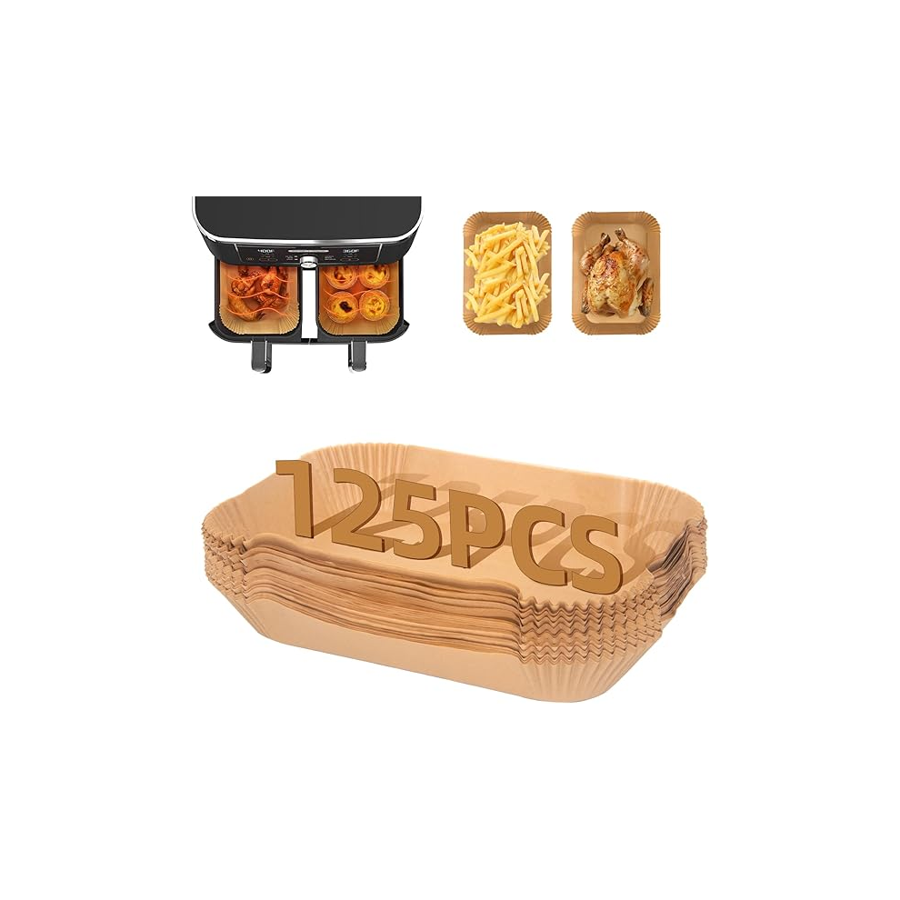 FIFHEN 125PCS Air Fryer Liners, Disposable Paper Liners for Ninja Dual Air Fryer AF300UK AF400UK, Salter, Tower, and Other Dual Zone Air Fryer Models