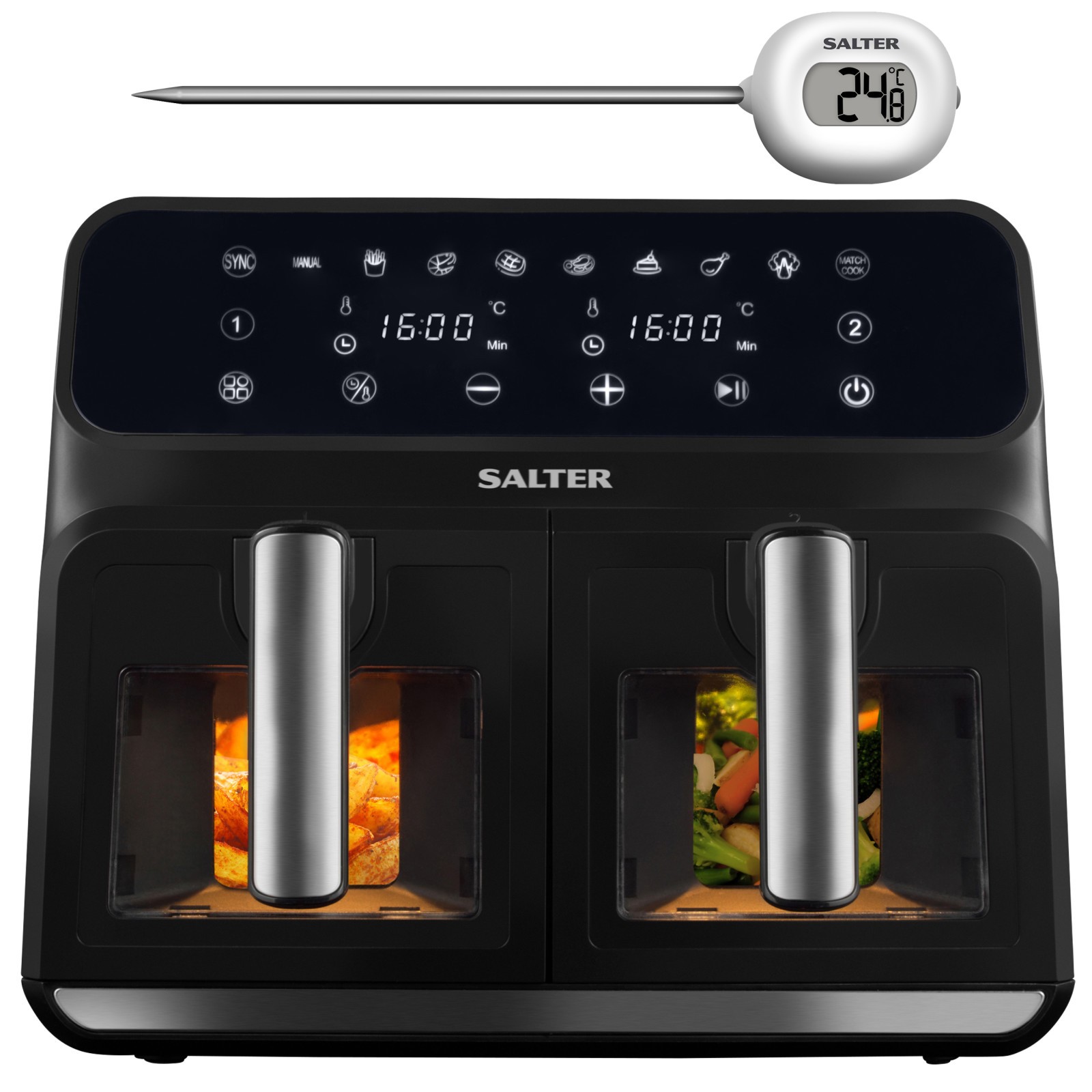 Salter Dual Air Fryer Pro With Thermometer Instant Meat CookTemperature Probe