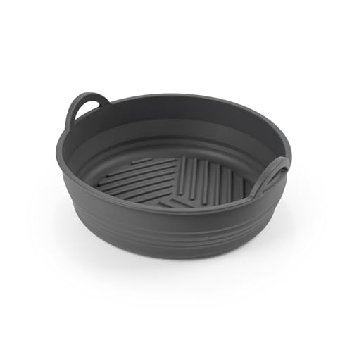 Salter Round Air Fryer Basket Liner - Collapsible Silicone, Set of 2, Ribbed Base for Air Circulation, Dishwasher Safe, Non Stick Airfryer Inserts, Handles to Lift, BPA Free, 21.5 x 6 cm