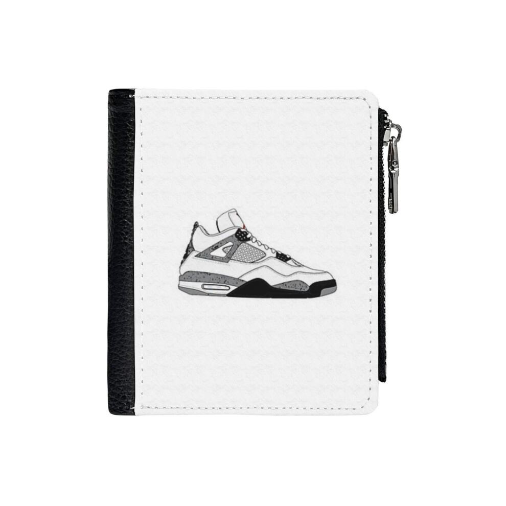 (Air Jordan IV (4) White Cement_52) PU Wallet Compact Bifold with Zipper & Multiple Card Coins Slots Black Stylish Durable Graphic Design Print for Me