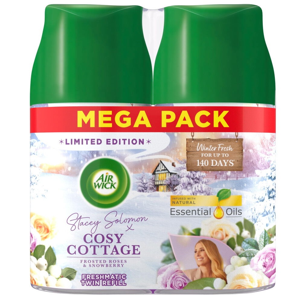 Air Wick Cosy Cottage Frosted Roses & Snowberry|Freshmatic Max Twin Refill |2 x 250ml |Pack of 1 | Infused with Natural Essential Oils