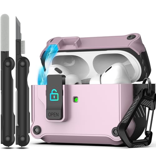 RFUNGUANGO Compatible with AirPods Pro 2nd/1st Case with Secure Lock Clip,Automatic Pop-up Case Full-Body Shockproof Hard Protective Cover Compatible with AirPods Pro 2 (2023/2022/2019),Purple