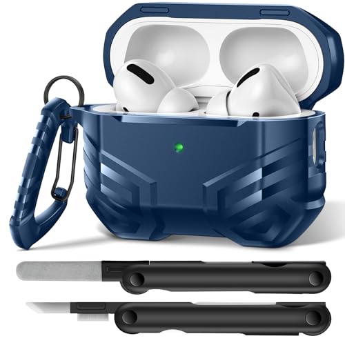 MOBOSI for AirPods Pro 2 Case Cover with Lock & Cleaner Kit & Keychain, Compatible with Airpod Pro Case 2nd/1st Gen Military Grade Shockproof Protective Hard Shell for Men(2023/2022/2019), Blue