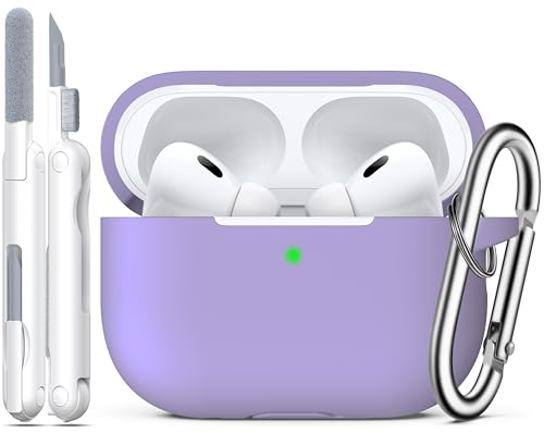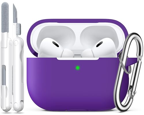 R-fun Compatible with AirPods Pro 2nd/1st Generation Case Cover with Cleaning kit, Full Protective Silicone for Apple AirPods Pro 2023/2022/2019 Charging Case[LED anteriore visibile],Purple