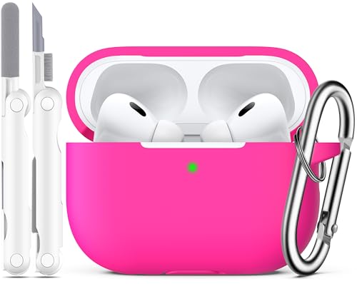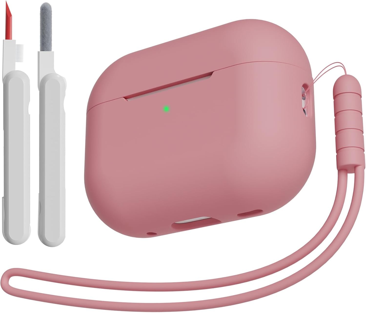 R-fun Compatible with AirPods Pro 2nd/1st Generation Case Cover with Cleaning kit, Full Protective Silicone for Apple AirPods Pro 2023/2022/2019 Charging Case[LED anteriore visibile],Rose Pink