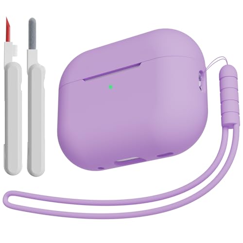 KOKOKA Case Cover Compatible for AirPods Pro 2 (2023/2022/2019) with Cleaner Kit and Lanyard, Soft Silicone Shock Absorbing Protective Case for AirPods Pro 2nd/1st Generation, Lavender
