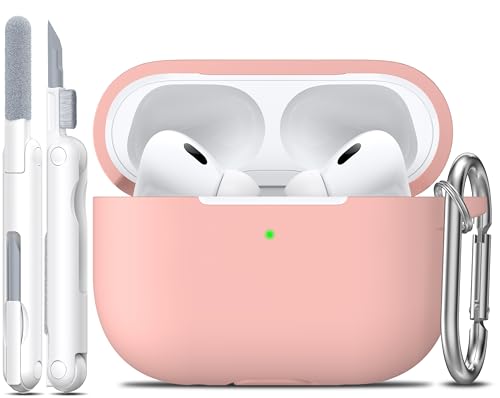 R-fun Compatible with AirPods Pro 2nd/1st Generation Case Cover with Cleaning kit, Full Protective Silicone for Apple AirPods Pro 2023/2022/2019 Charging Case[LED anteriore visibile],Sand Pink