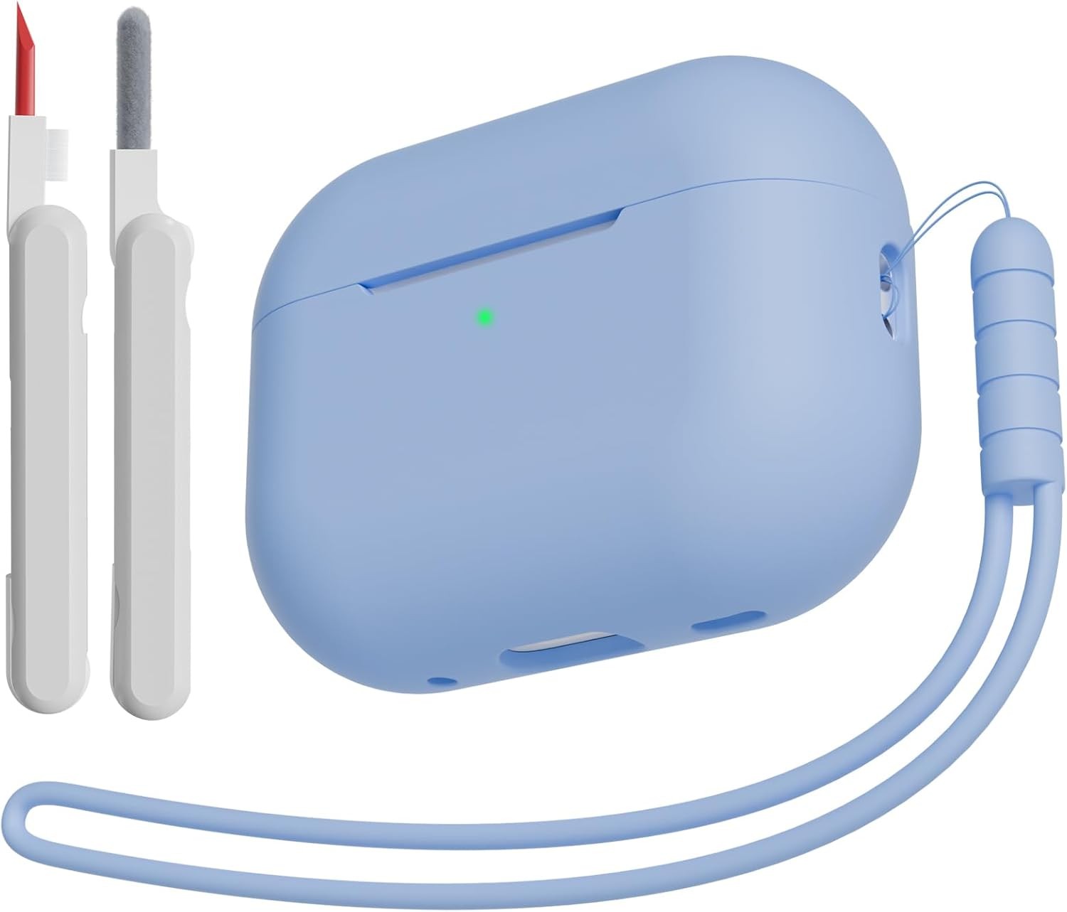 KOKOKA Case Cover Compatible for AirPods Pro 2 (2023/2022/2019) with Cleaner Kit and Lanyard, Soft Silicone Shock Absorbing Protective Case for AirPods Pro 2nd/1st Generation, Gray Blue