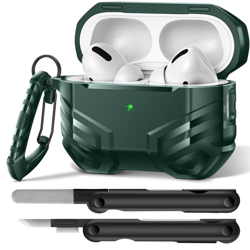MOBOSI for AirPods Pro Case with Cleaner Kit, Compatible with Airpod Pro 2 Case 1st/2nd Generation with Lock & Keychain, Full Body Shockproof Protective Cover (2023/2022/2019), Green