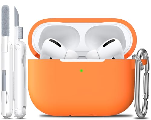 R-fun Compatible with AirPods Pro 2nd/1st Generation Case Cover with Cleaning kit, Full Protective Silicone for Apple AirPods Pro 2023/2022/2019 Charging Case[LED anteriore visibile],Orange