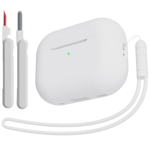 KOKOKA Case Cover Compatible for AirPods Pro 2 (2023/2022/2019) with Cleaner Kit and Lanyard, Soft Silicone Shock Absorbing Protective Case for AirPods Pro 2nd/1st Generation, White