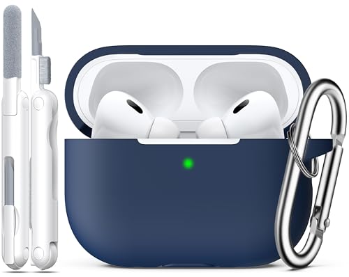 R-fun Compatible with AirPods Pro 2nd/1st Generation Case Cover with Cleaning kit, Full Protective Silicone for Apple AirPods Pro 2023/2022/2019 Charging Case[LED anteriore visibile],Midnight blue