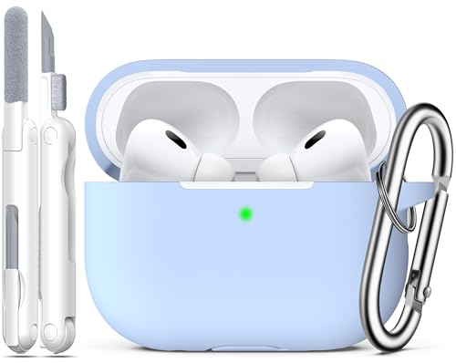 R-fun Compatible with AirPods Pro 2nd/1st Generation Case Cover with Cleaning kit, Full Protective Silicone for Apple AirPods Pro 2023/2022/2019 Charging Case[LED anteriore visibile],Sky Blue