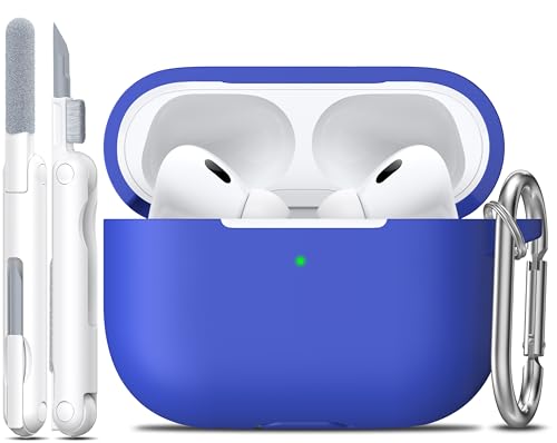 R-fun Compatible with AirPods Pro 2nd/1st Generation Case Cover with Cleaning kit, Full Protective Silicone for Apple AirPods Pro 2023/2022/2019 Charging Case[LED anteriore visibile],Blue