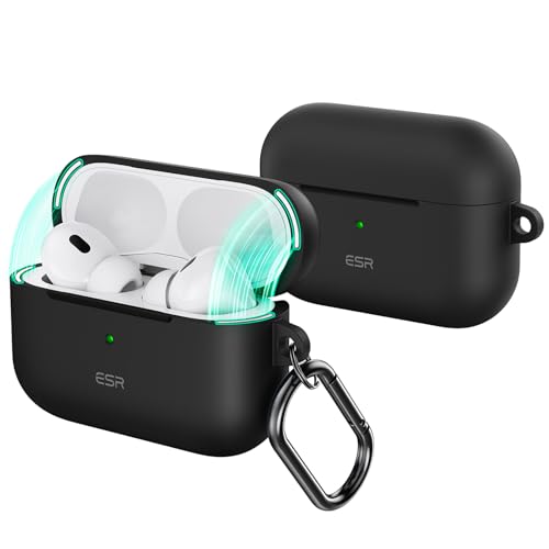 ESR for AirPods Pro 2 Case (2023/2022/2019), Compatible with AirPods Pro 2/1 Case (USB-C/Lightning Cable), Compatible with MagSafe, Magnetic Lid Lock, Full Drop Protection, Cloud Series, Black