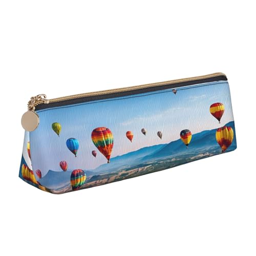 BWPDPXFJ Hot Air Balloons -Print Triangular Leather Pencil Case - Eco-Friendly Crossgrain Organizer W/Premium Zipper for School, Office & Travel