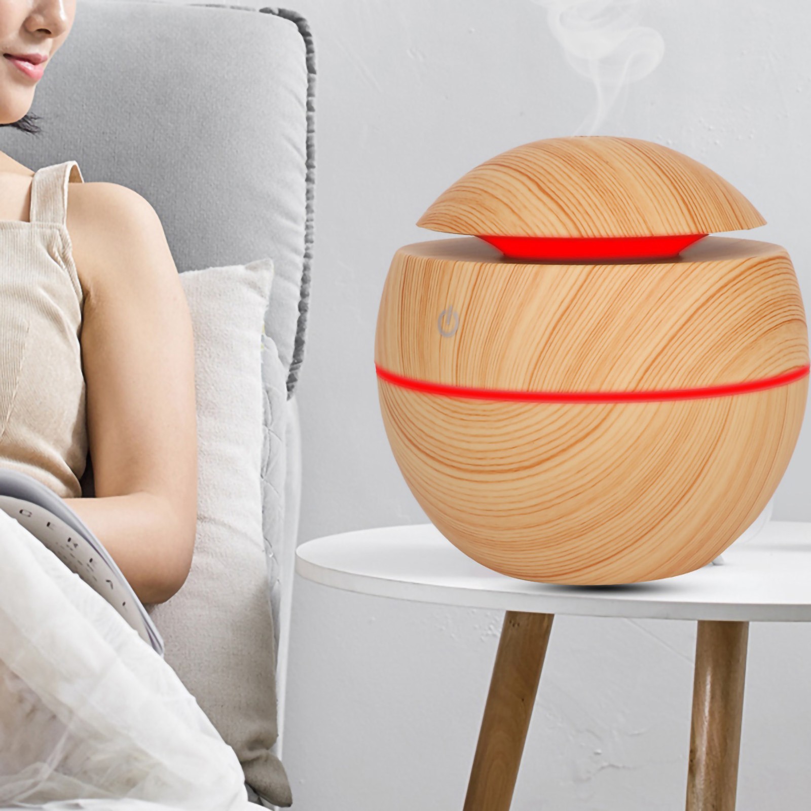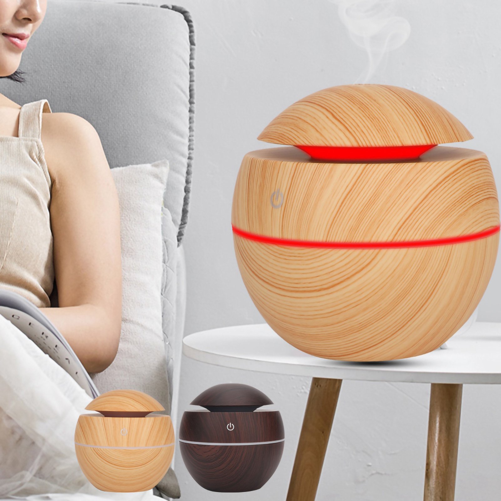 USB LED Touch Wood Grain Air Humidifier Purifier Oil Diffuser UK