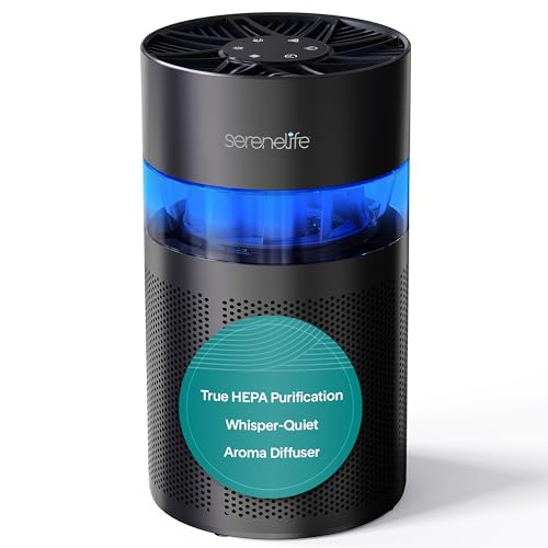 SereneLife HEPA Air Purifier for Bedroom Home– Small Quiet Air Cleaner with Aroma Box & Ambient Light, Timer, Sleep Mode, 2 Fan Speeds with Filter Change Reminder and H13 HEPA Filter, Black