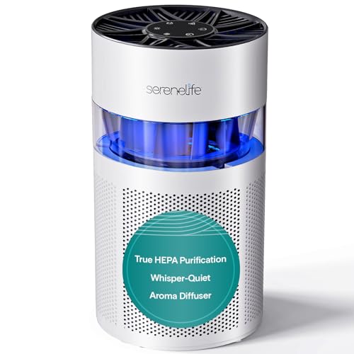 SereneLife HEPA Air Purifier for Bedroom Home– Small Quiet Air Cleaner with Aroma Box & Ambient Light, Timer, Sleep Mode, 2 Fan Speeds with Filter Change Reminder and H13 HEPA Filter, White