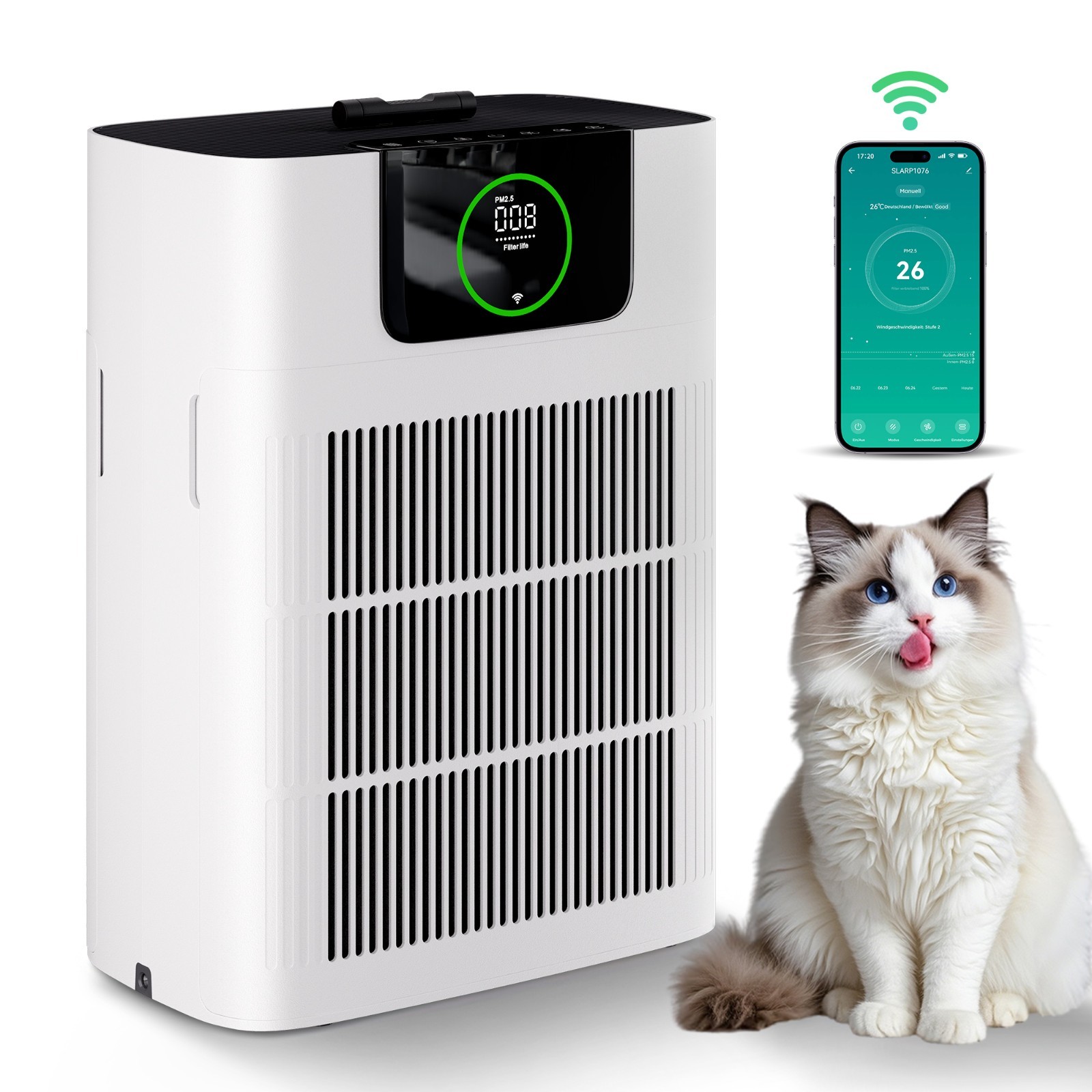 SereneLife Air Purifier for Home - Smart Room Air Purifier with Sleep and Automatic Modes, WiFi and App Control, Ultra Quiet, Removes Dust, Pet Hair and Odor for Large Rooms up to 100 m² (White)
