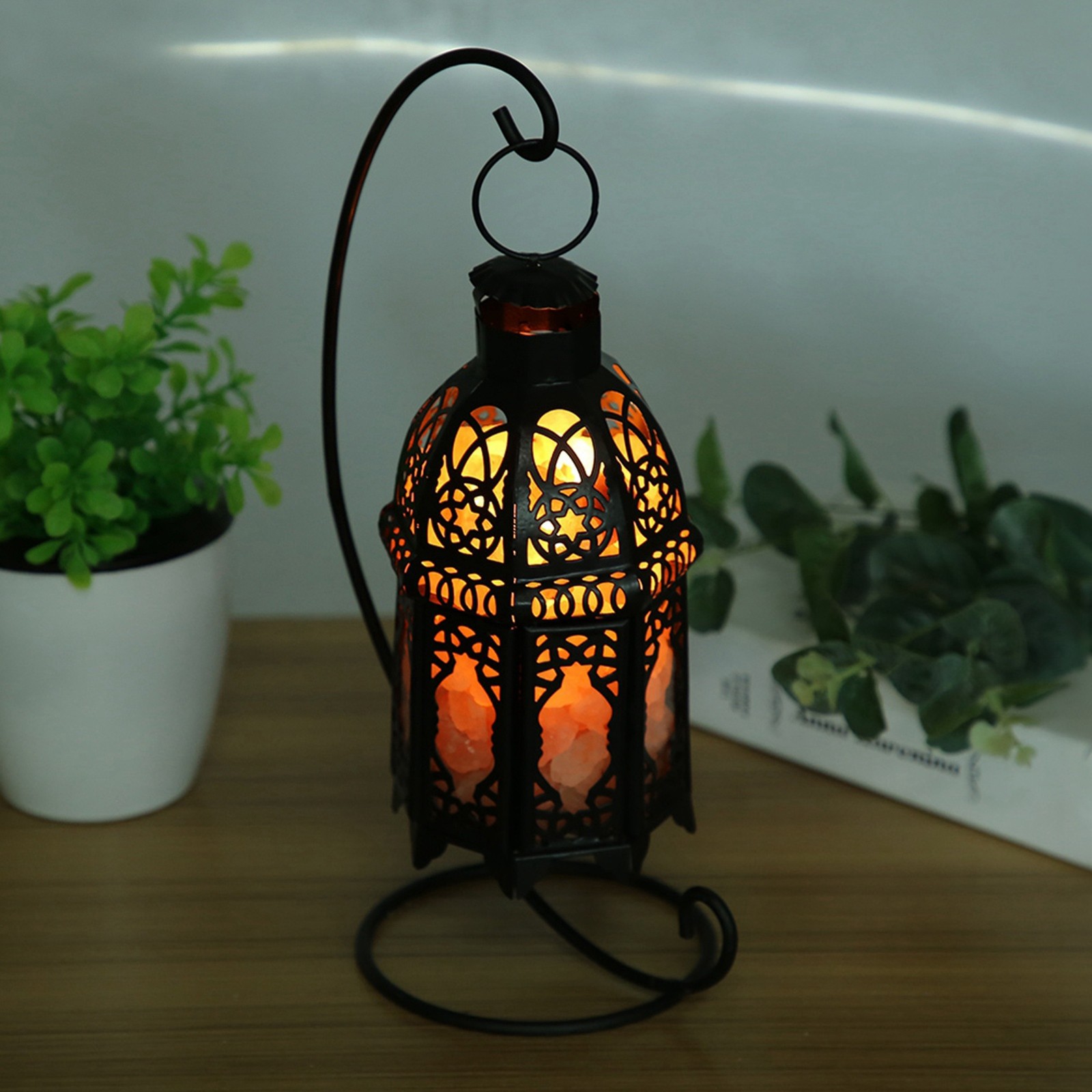 Vintage Iron Frame Natural Crystal Salt Rock Lamp Air Purifier Room Night L HEN