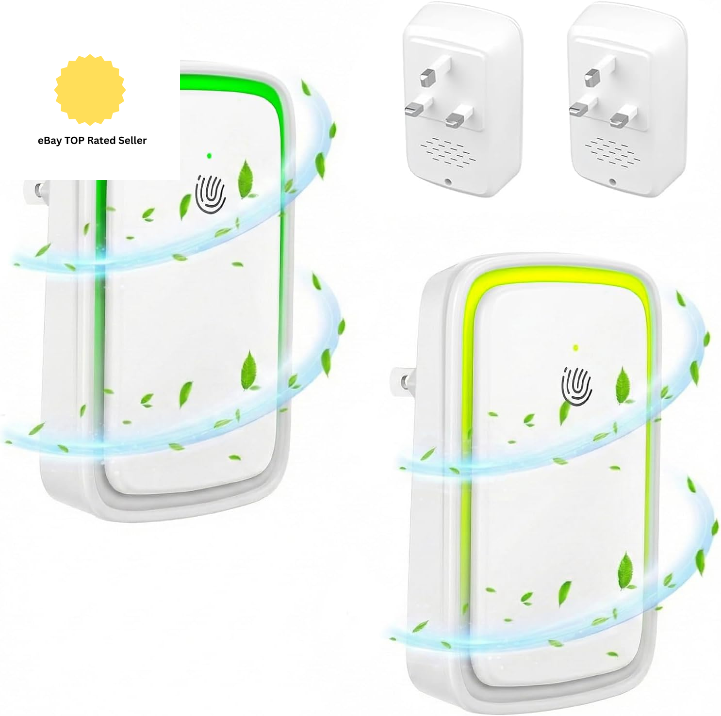 Air Purifier Plug-In UK 2 Pack, Negative Ion Air Ioniser with Two-Speed Settings, Portable Odour Eliminator for Home, Bedroom, Office & Kitchen, Removes Smoke, Dust & Pet Smells