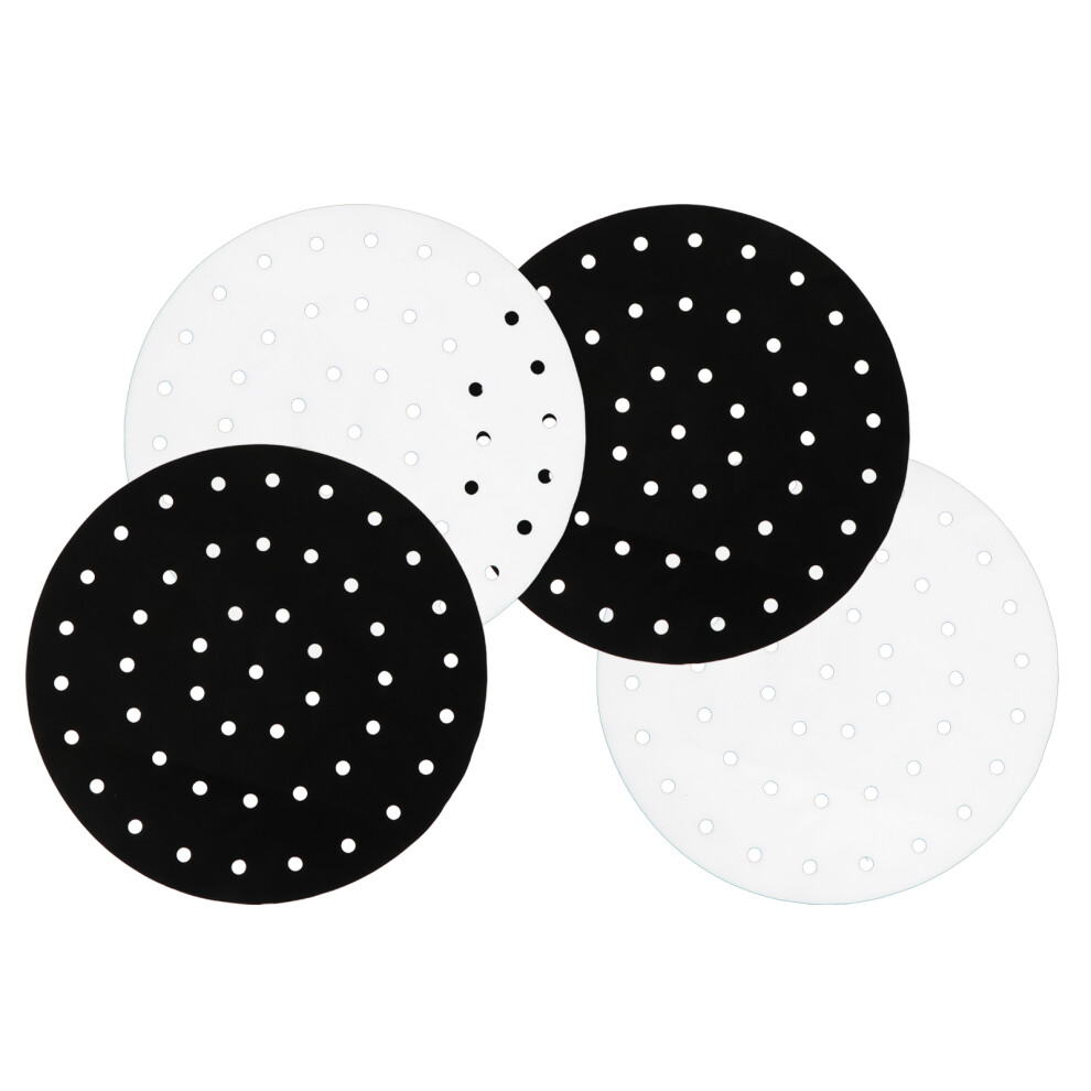 4Pcs Reusable Air Fryer Mats Steamer Liners Baking Mats Black White