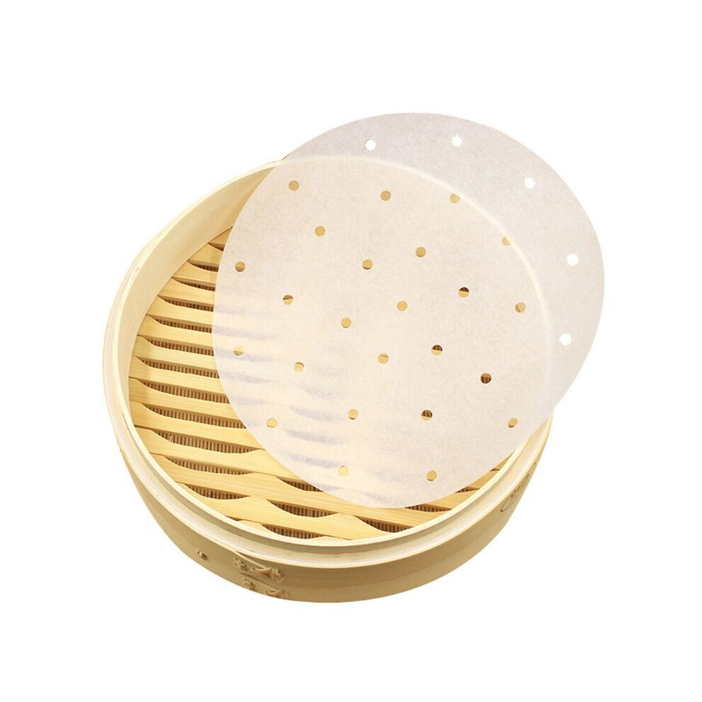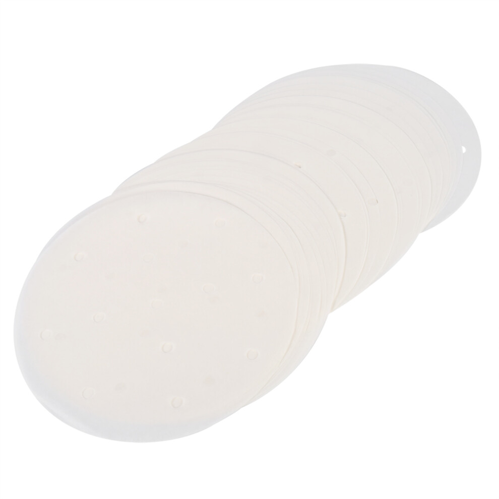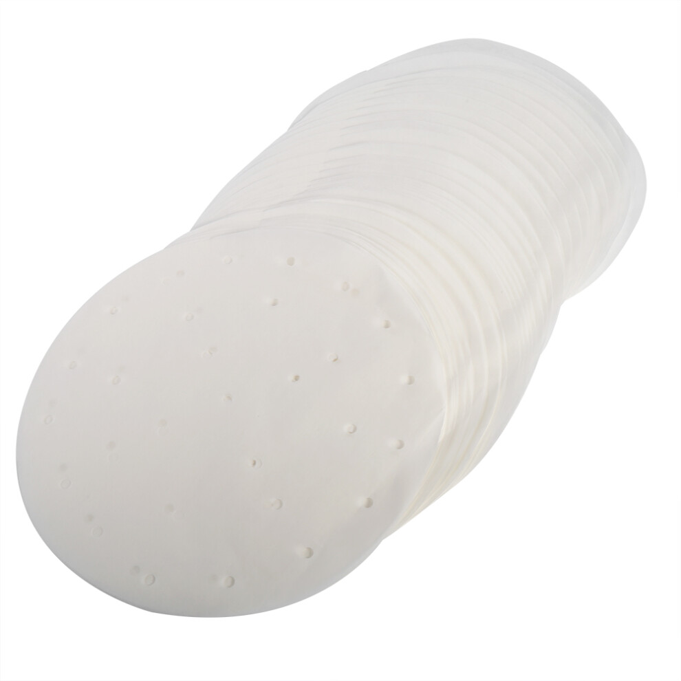 T5EB 100Pcs/Bag 7.5/9 inches Air Fryer Steamer Liners Premium Perforated Wood Pulp Papers Non-Stick Steaming Basket Mat Baking