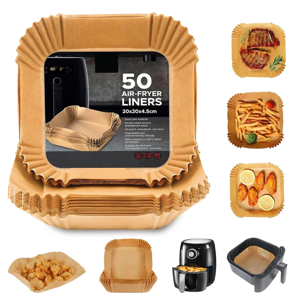 Albert Austin Air Fryer Liners Parchment Paper Liners for Microwave Air Fryer Steamer Pack of 50 Oil Proof Disposable Greaseproof Baking Paper Liners