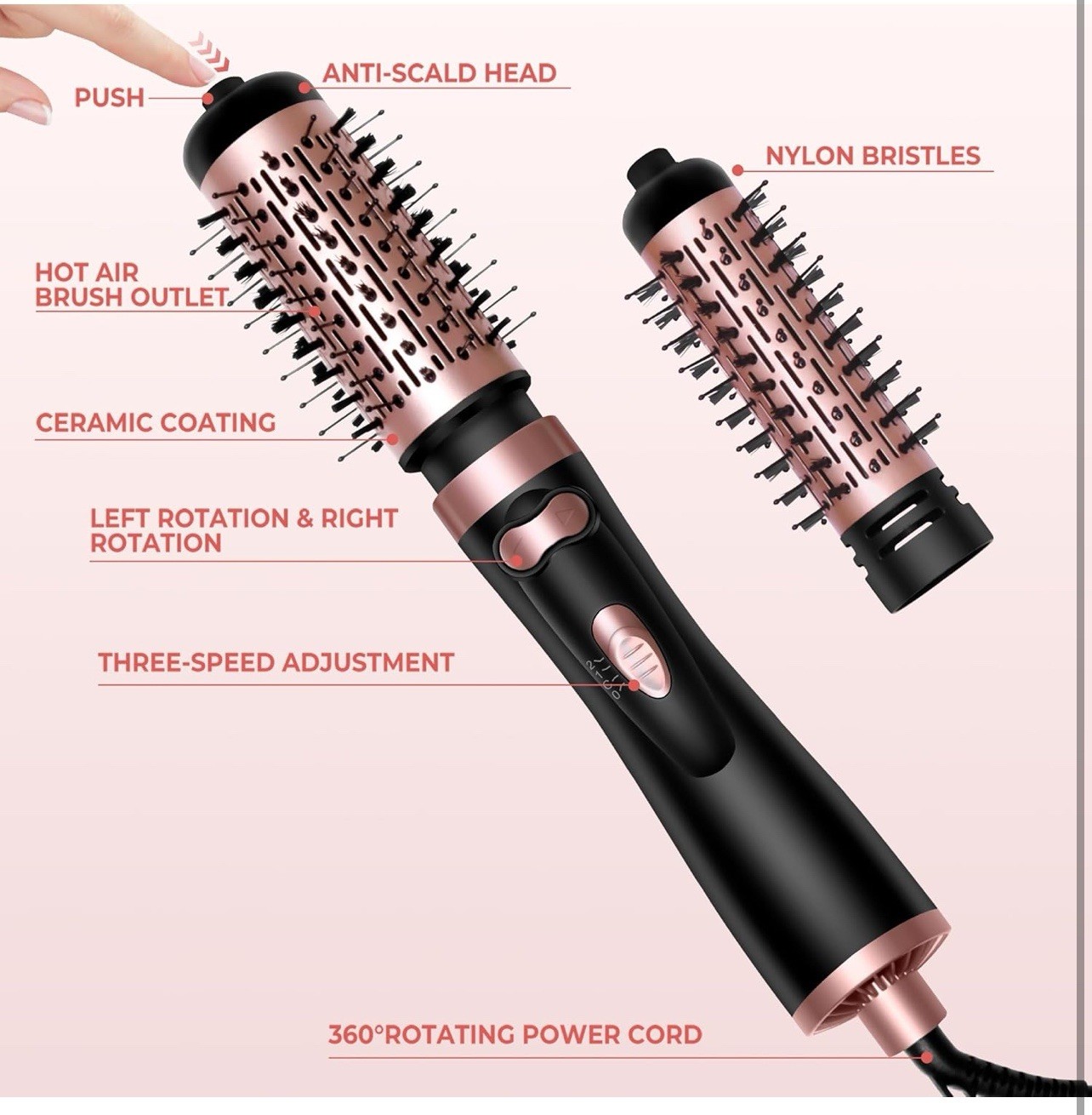 3in1 Hot Air Brush Styler with 360 Degree Rotating Hair Dryer Brush for Curling, Straightening, Volumizing