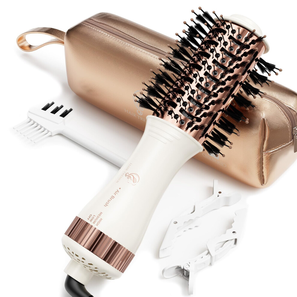 (Gold) 5 in 1 1000w Hair Dryer Brush,30mm Air Curler, Detachable Styler Tools for Drying Curling Straightening,3 Wind Speed and Temperature