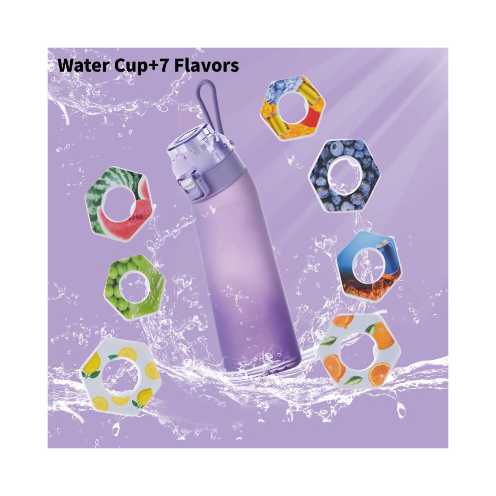 (Blue Purple) 650Ml Air up Water Bottle with 7 Fruit Fragrance Bottle Flavored Taste Pods UK