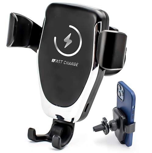 STATUS 15 W Wireless Fast Car Charger Auto-Clamping Air Vent Phone Holder Mount, Compatible with iPhone Samsung Android Smartphones, Includes USB-C Cable, Black (SBWCC1PKB6)