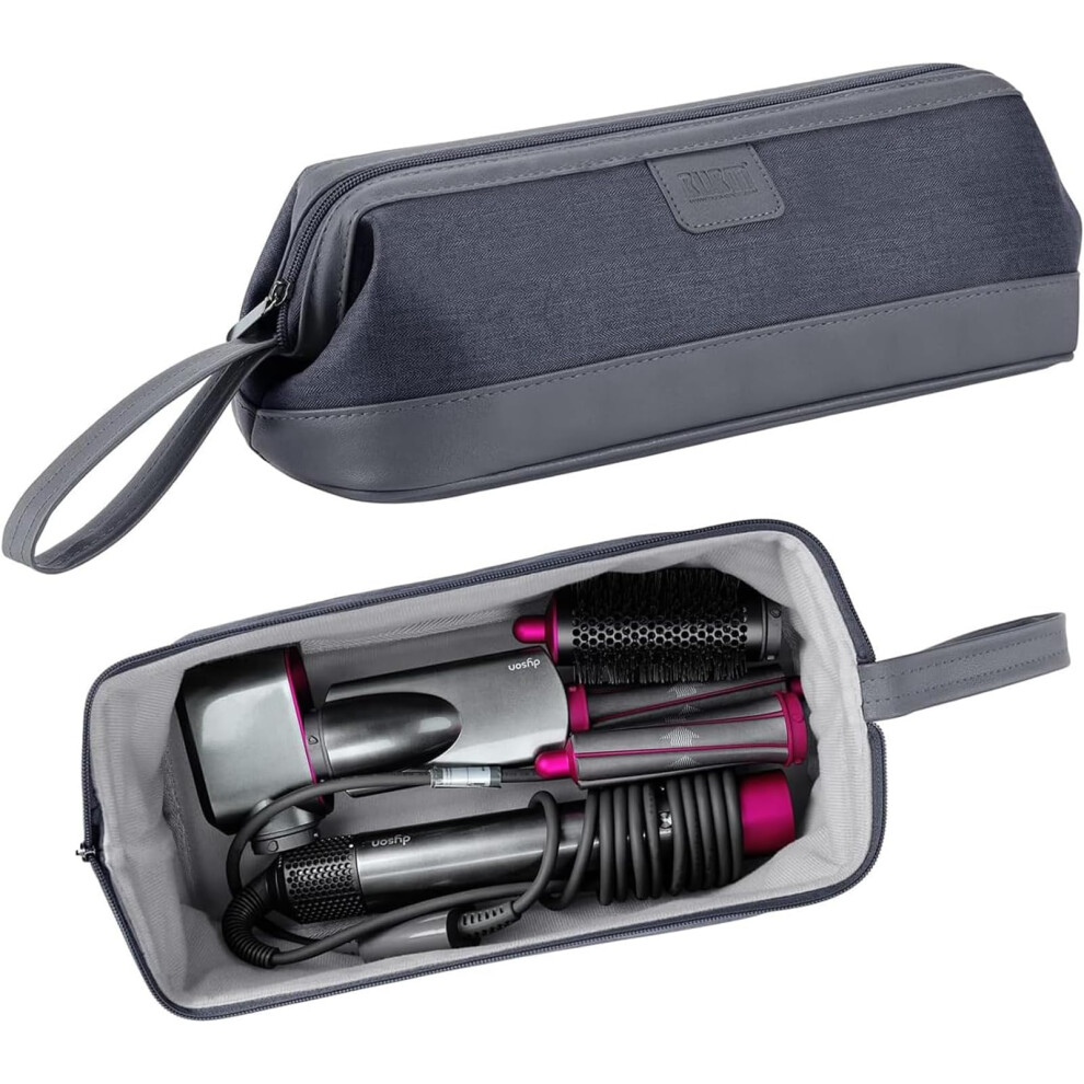 Veki Portable Travel Storage Bag Compatible with Dyson Supersonic Hair Dryer, PU Leather Protective Carrying Case for Dyson Airwrap Styler, Travel Organiser Bag for Hair Curler Accessories (Grey)