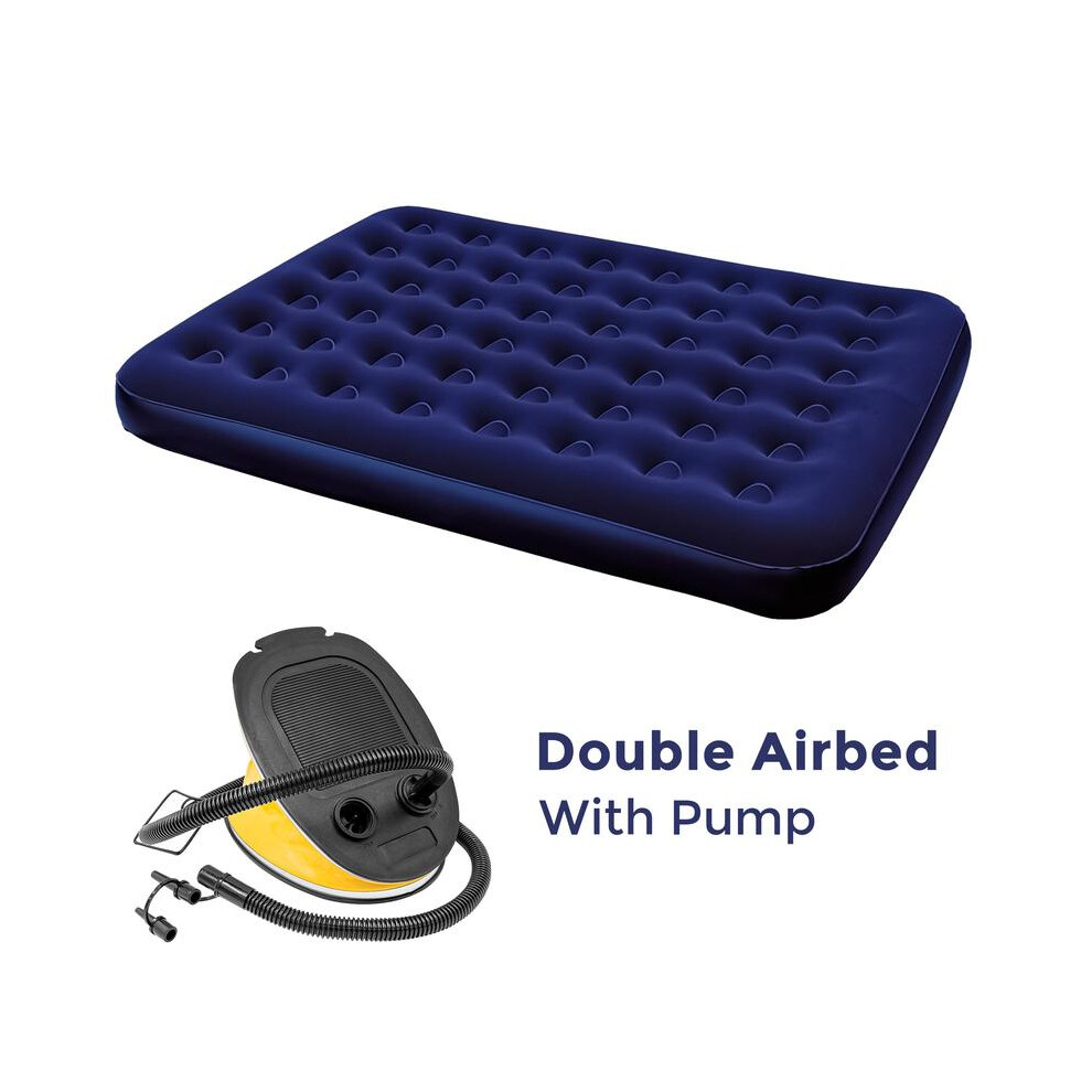 (DOUBLE AIRBED + FOOT PUMP) Double Single Flocked Camping Airbed Inflatable Mattress Blow Up Air Bed