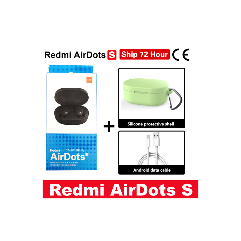 (a-Airdots S case Green) Origina Xiaomi Redmi AirDots 2 In Ear Bluetooth 5.0 Wireless Earphones With Mic Handsfree Earbuds AI Control AirDots Pro 2S 2