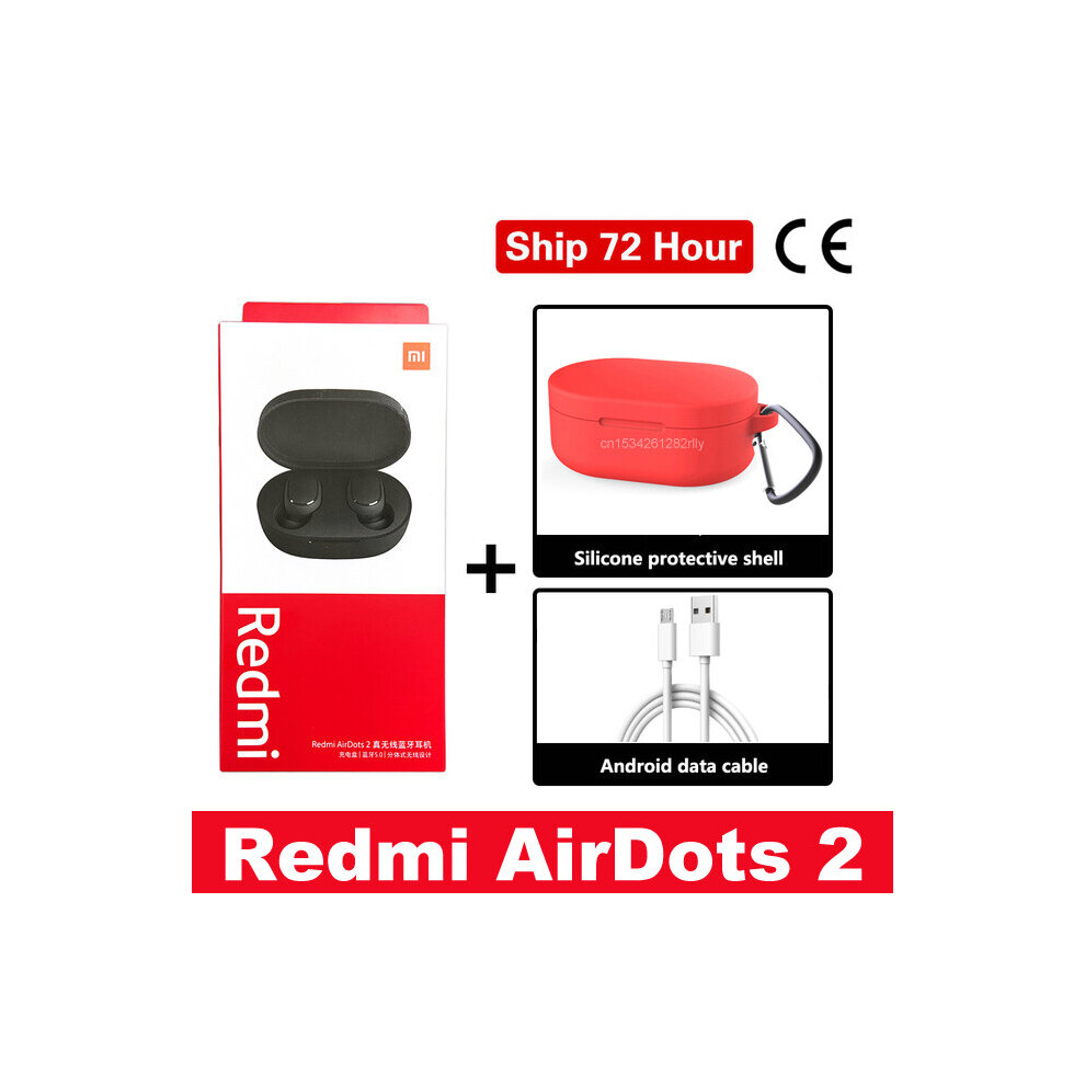(a-with Red Case) Global Version Xiaomi Redmi Airdots 2 Bluetooth 5.0tws Waterproof Headphones Fone Xiaomi Earbuds Basic 2 In-Ear Headphones