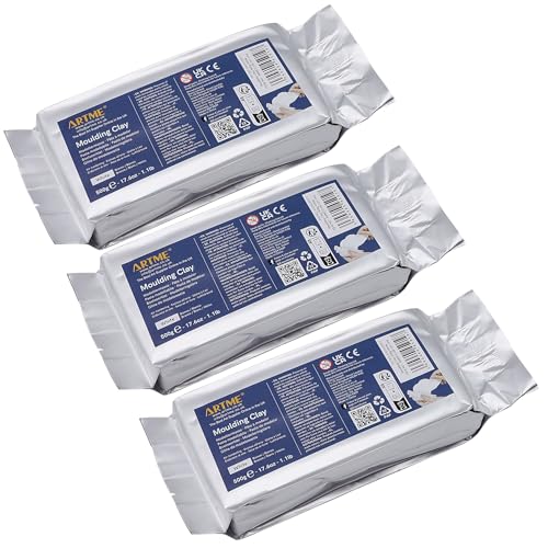 ARTME Modelling Clay White 1500g (500g x 3pk) Air Hardening for Arts and Creative Crafting - Air-Dry, Individual Package 500g x 3pk