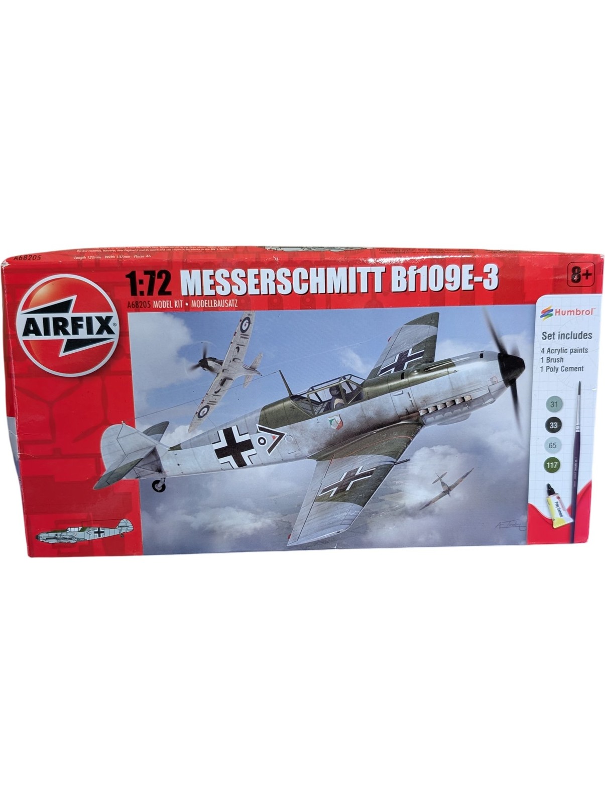 Airfix 1:72 Messerschmitt Bf109E-3 Model Kit Includes Paints Brush Cement