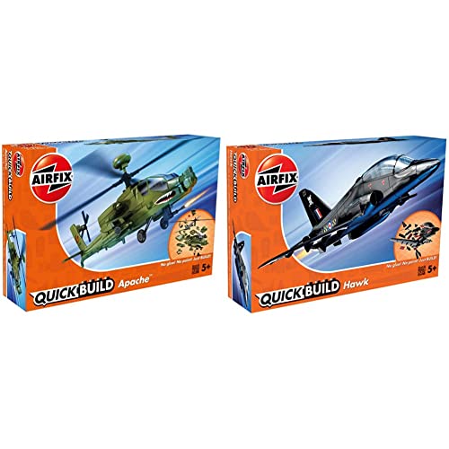 Airfix J6004 Quick Build Apache Helicopter Model Kit & J6003 Quick Build BAe Hawk Aircraft Model Kit (Black)