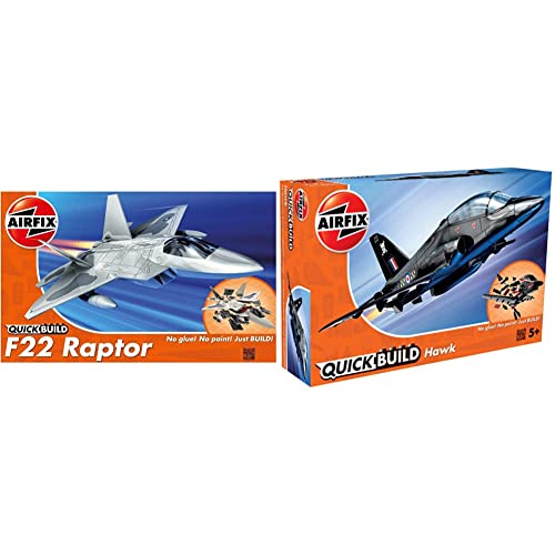 Airfix Quick Build F22 Raptor Aircraft Model Kit & J6003 Quick Build BAe Hawk Aircraft Model Kit (Black)