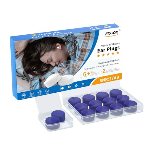 EXGOX 7 Pairs Silicone Ear Plugs for Sleeping Noise Cancelling Reusable Moldable Wax Earplugs for Swimming, Work, Airplane, SNR27dB (Drak Blue)