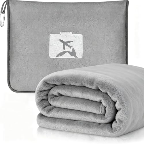 LESANM Travel Pillow and Blanket, 2 in 1 Airplane Blanket with Eye Mask and Ear Plugs, Compact Office Blankets, Lightweight & Portable Pillow for Adults, Kids,Long Flights and Trains
