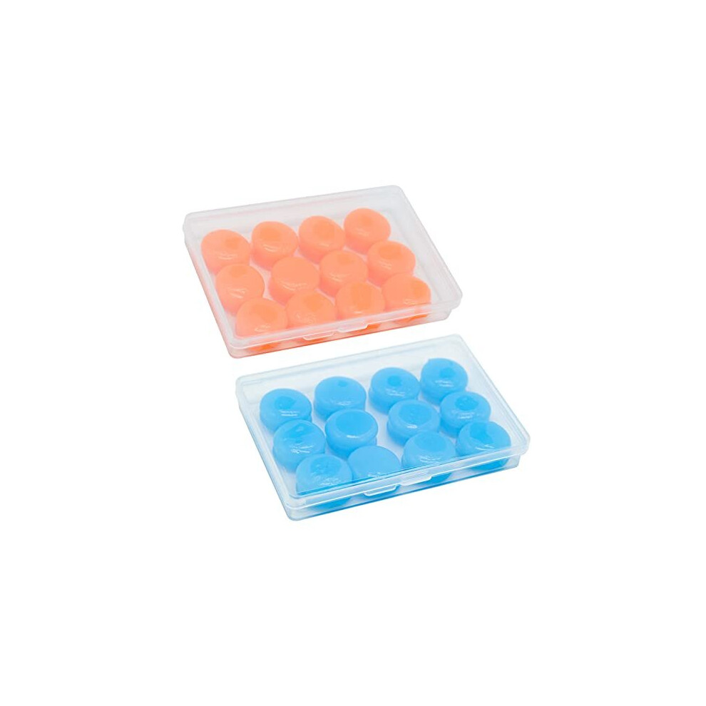 12 Pairs Silicone Ear Plugs for Sleeping Noise Cancelling Reusable Moldable Wax Earplugs for Swimming, Work, Airplane, SNR27dB(Blue, Orange)
