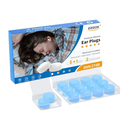EXGOX 7 Pairs Silicone Ear Plugs for Sleeping Noise Cancelling Reusable Moldable Wax Earplugs for Swimming, Work, Airplane, SNR27dB(Blue)