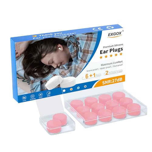 EXGOX 7 Pairs Silicone Ear Plugs for Sleeping Noise Cancelling Reusable Moldable Wax Earplugs for Swimming, Work, Airplane, SNR27dB(Pink)