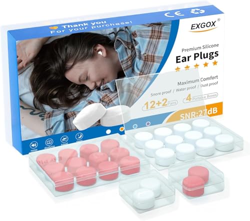 EXGOX 14 Pairs Silicone Ear Plugs for Sleeping Noise Cancelling Reusable Moldable Wax Earplugs for Swimming, Work, Airplane, SNR27dB(Pink, White)